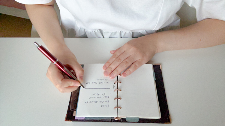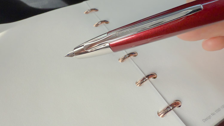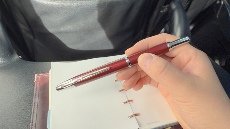 カラーはレッド、ペン先の太さはEFにした。レッドはビジネスシーンでも使用できて、大人らいしかわいさも合わせている感じがする。