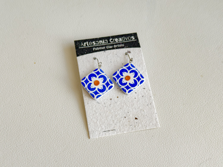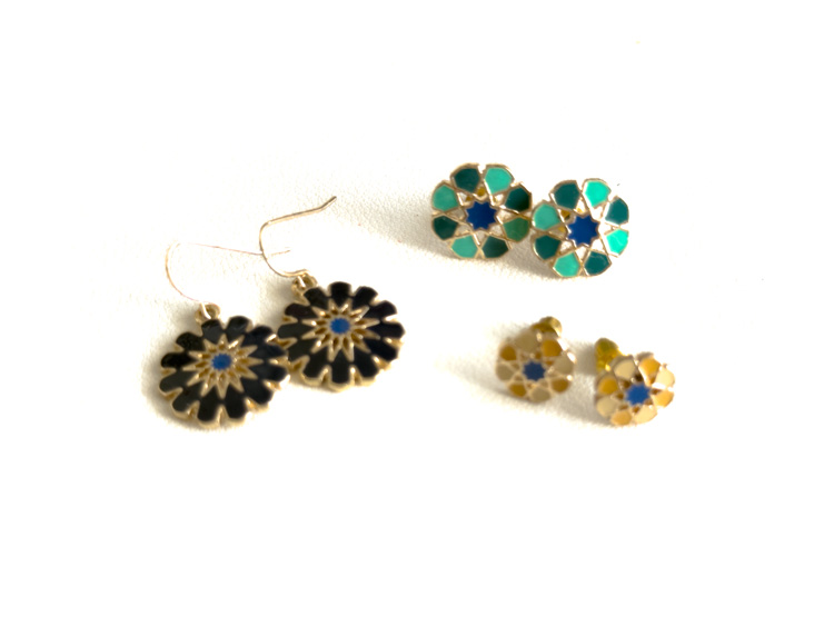 アルハンブラ宮殿のタイルっぽい柄のピアス。