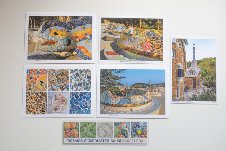 グエル公園は、タイルの配色が美しく、トカゲのモチーフもかわいかった。お土産もこのタイルモチーフが多くて、後から見返せるように、ポストカードを購入した。
