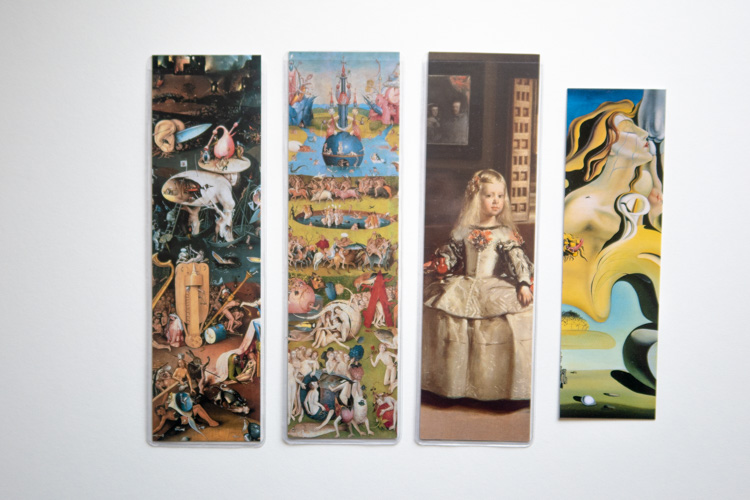 左2つはヒエロニムス・ボス、左から3つ目はベラスケスのラス・メニーナス、1番右はダリ。