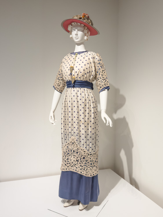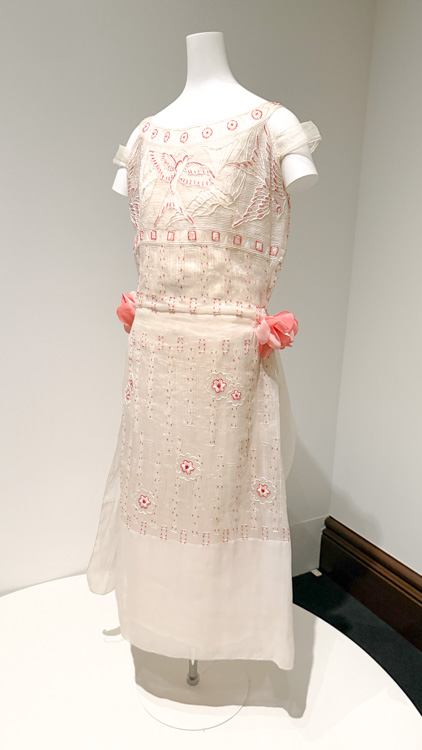 ポール・ポワレのドレスは、どれも当時の雑誌に出てくるファッション版画のドレスそのままみたいなデザインが多い。これも、部屋に飾っておきたいようなかわいさがある。