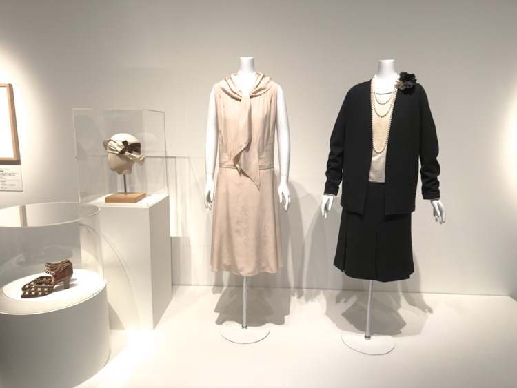 右の黒いアンサンブルはシャネル。すごくシャネルっぽい、シャネル本人が着ていそうなデザイン。好きな人は多そう。スタイルのいいおばちゃんが着てたら今でもおしゃれってなる気がする。