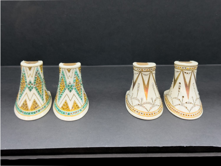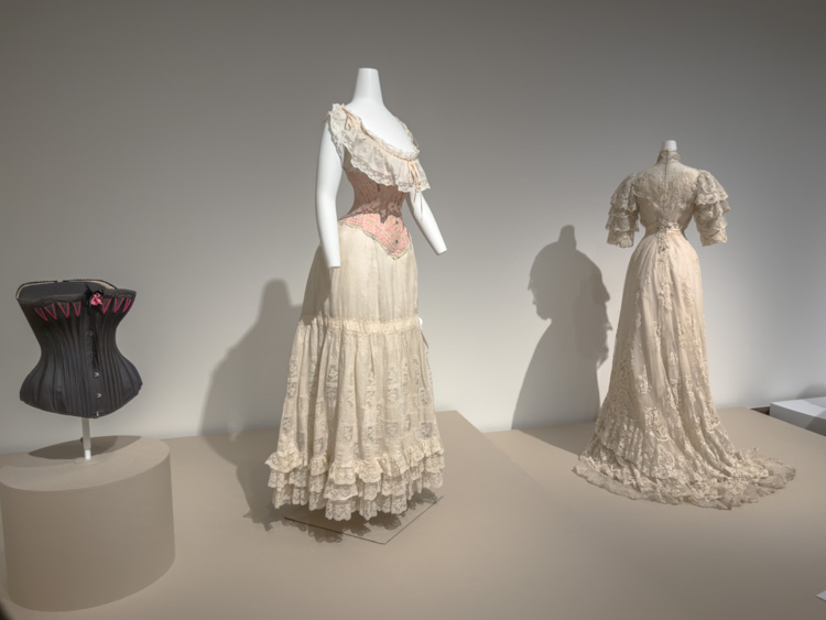 これはアール・ヌーヴォーのもの。キュッと締まったデザインで女性らしさを強調していたのだろうけど、やはり健康面は心配になる。アール・デコとのちがいがよくわかる。