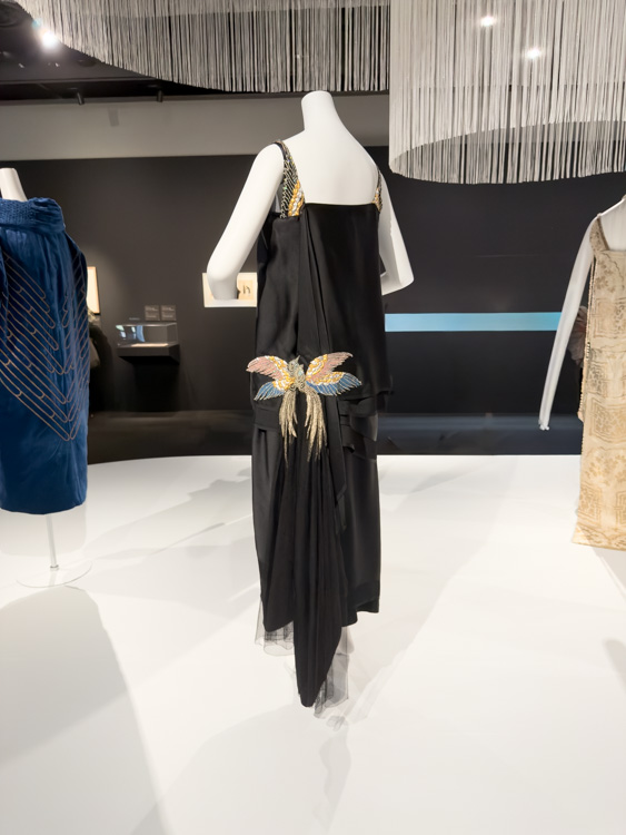 曲線が美しくて、あまりアール・デコという感じはしないけれど、黒のシックさ、全体のバランスと装飾の細やかさはすばらしい。綺麗とかわいいを両立しているようなドレスだと思う。